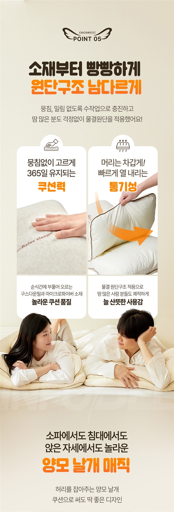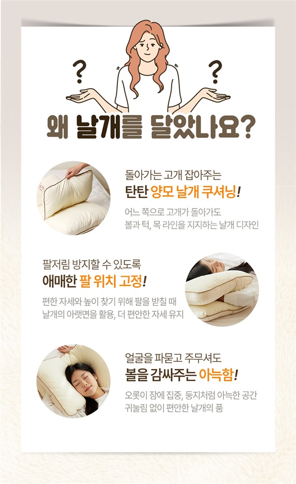 양모날개베개+더스트백 /사이즈:74 * 48