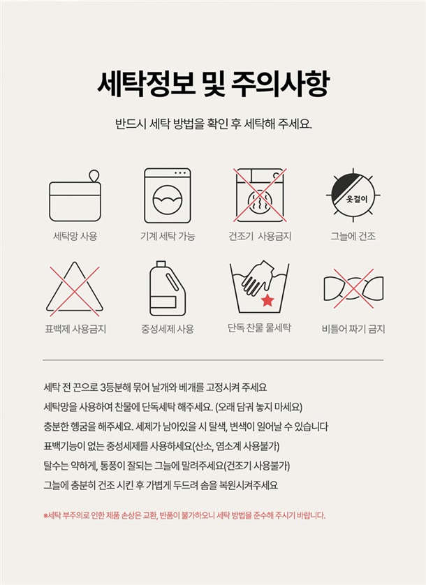 · 변심 교환/반품의 경우 왕복 택배비를 부담해 주셔야 합니다. (택배비 상품별 상이)