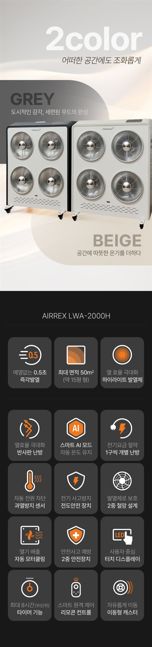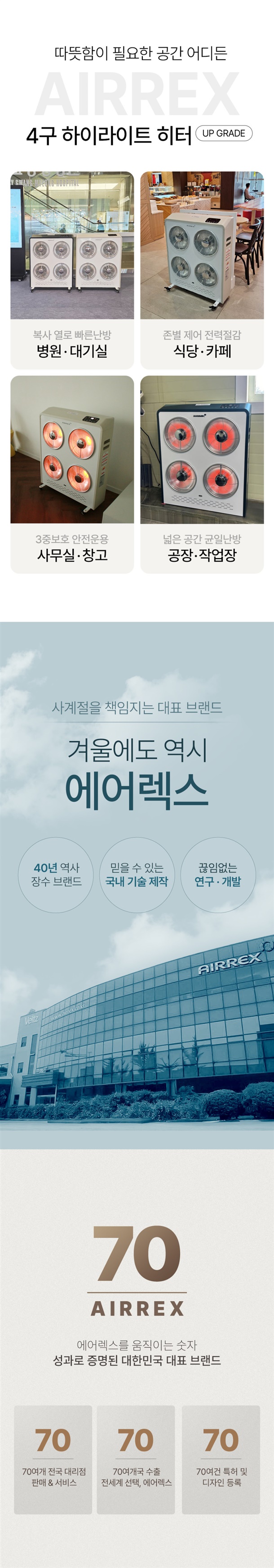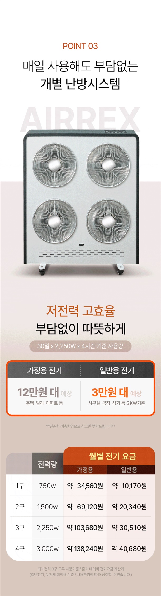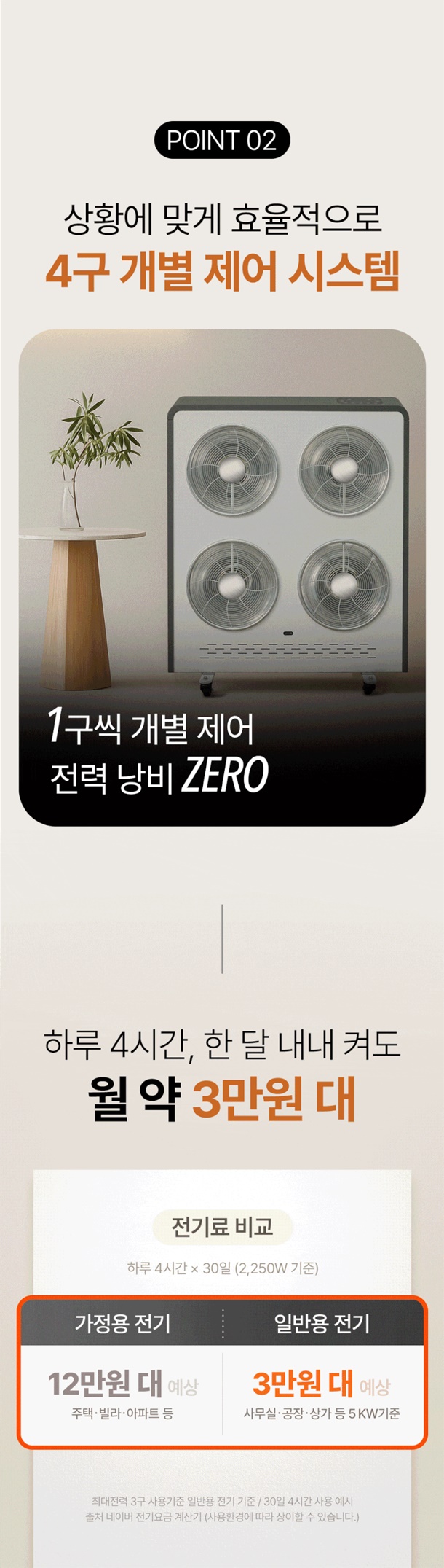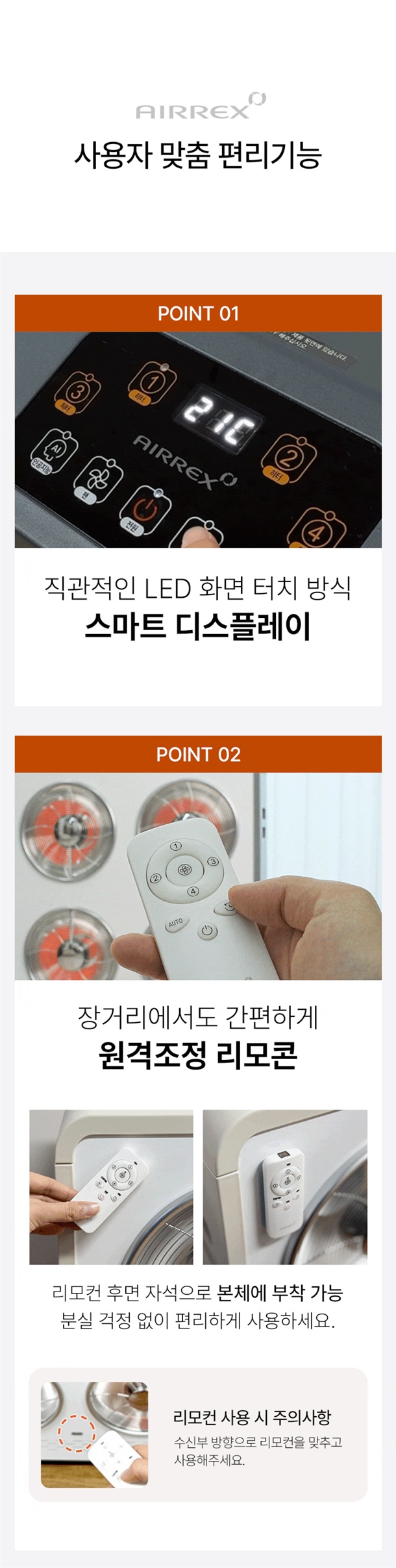 업소용, 난방전용, 산업용, 거실제어용, 야외전용, 스탠드겸용